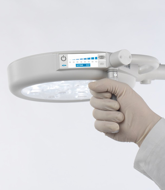 ACEMSO15F è la lampada a LED da visita, diagnostica, interventi di precisione, piccola chirurgia e per molteplici applicazioni in ambulatori e cliniche veterinarie.
